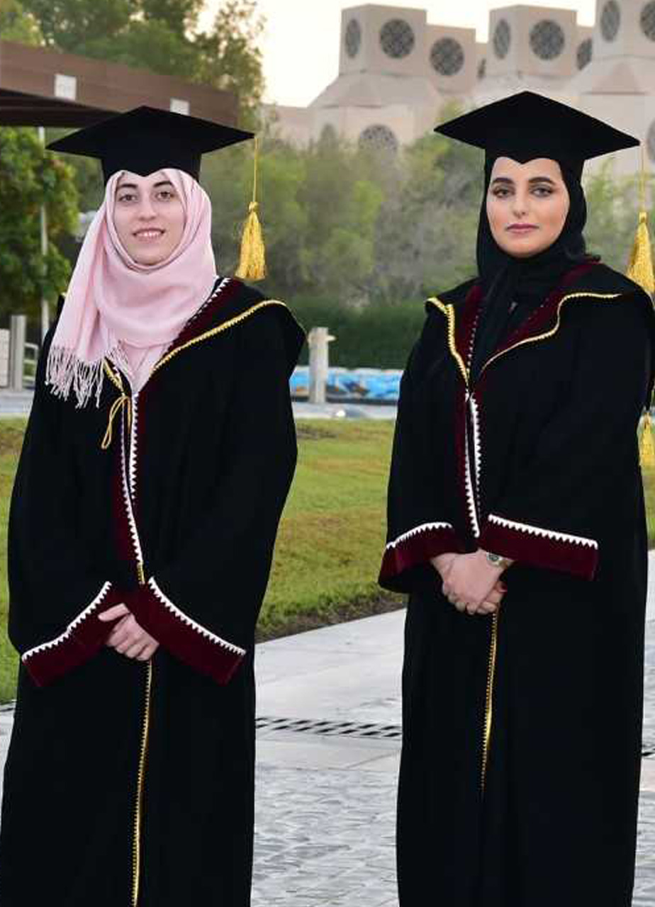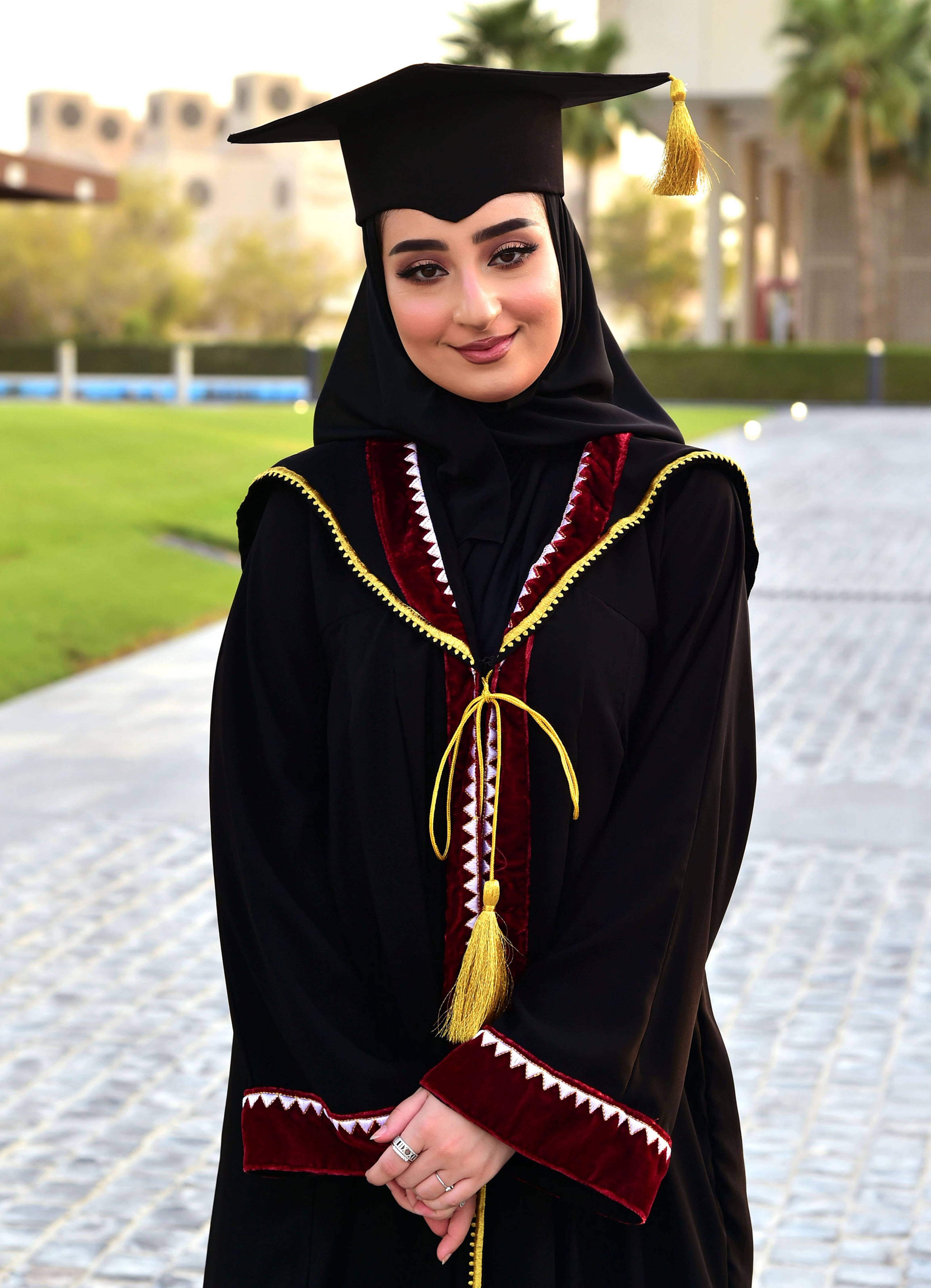 جَمَعَ الزيُّ الذي خُصص لحفل التخرج بين الأصالة والتراث القطري، ويُعَدُّ نموذجاً لزي التخرج المتعارف عليه والذي يتكون من عباءة سوداء وقبعة مربعة الشكل بلون أسود. وسيُوزَّع على الخريجات مقابل رسومٍ رمزية بمبلغ 150 ريالا قطريا.