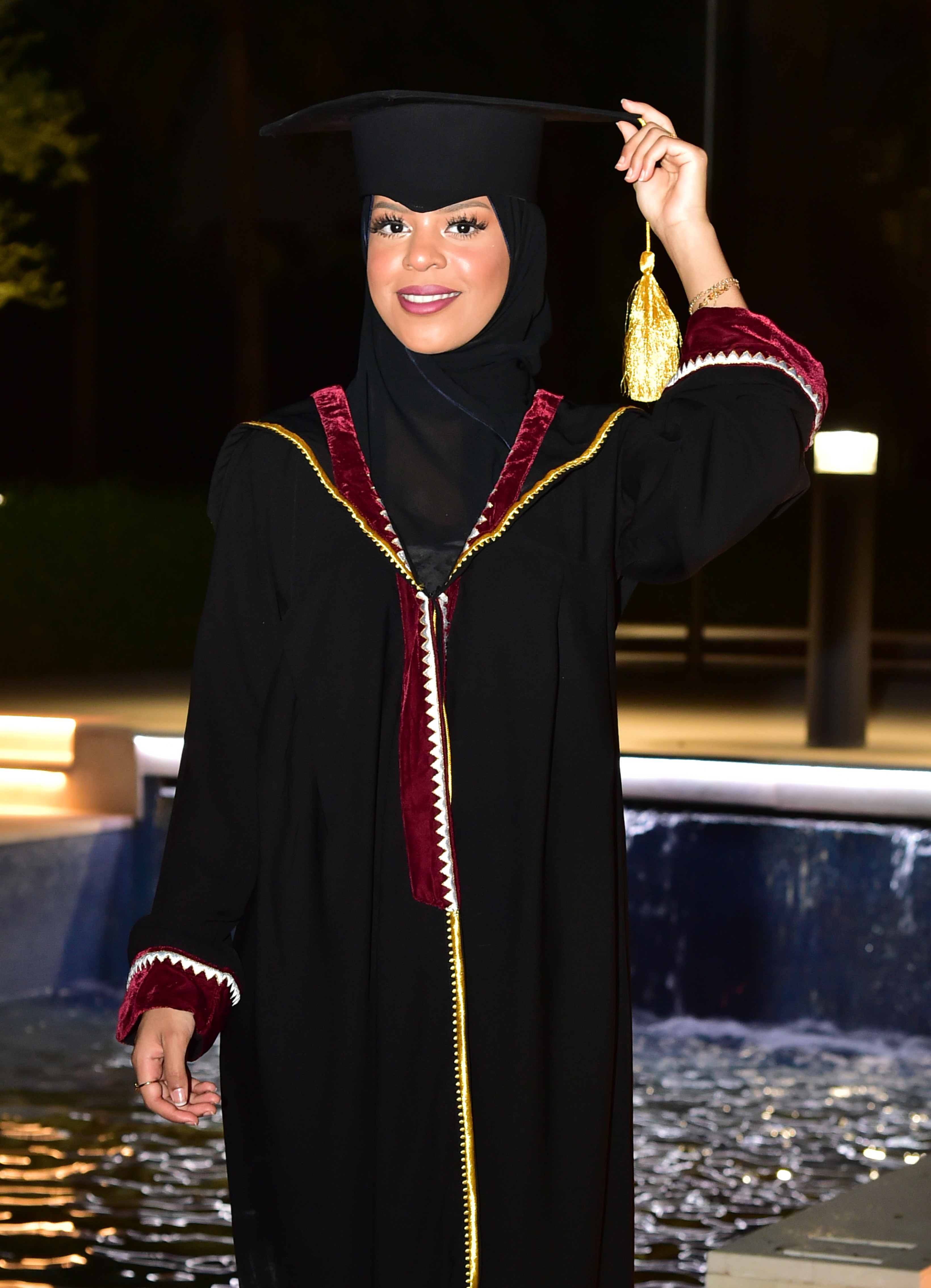 2. ارتداء زي التخرج إلزاميٌّ لجميع الخريجات في حفل التخرج، ولن يُسمح بإجراء أيِّ تعديلات على تصميم الزي، ولكن سيسمح بتعديل المقاس فقط .