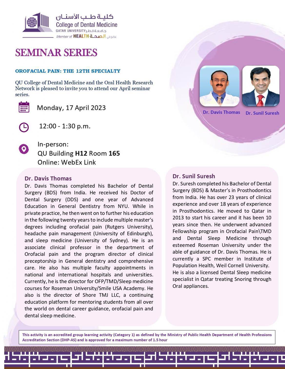 | 17 April 2023 | Dr.Faez Al Hamad | Dr. Davis, Dr .Sunil |