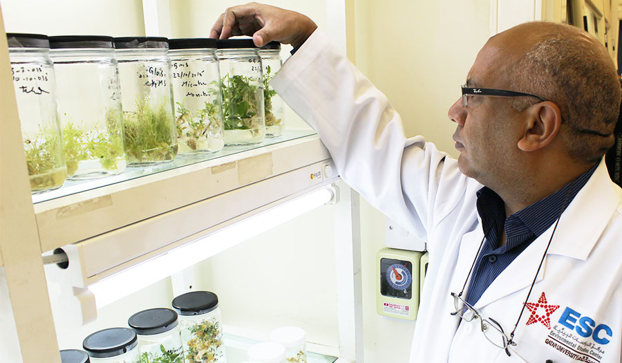 Application of tissue culture to plant conservation has been largely used in economically important crop plants. In our lab, this technology could successfully be extended to conserve Qatari endangered plants. In addition, DNA fingerprinting techniques using different DNA markers are used to analyze genetic structure of the rare and endangered plant species to understand their biology and to identify conservation priorities for making better conservation plans (ex situ or in situ). Moreover, the lab aims to use plant in-vitro culture technique as an alternative source to whole plant cultivation to produce valuable natural bio-products.